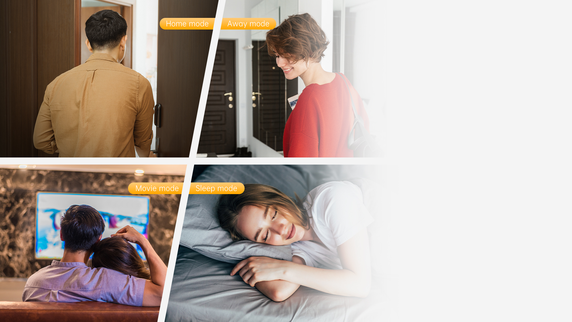 Des scènes pour chaque instant Le système d'éclairage intelligent d'Akubela personnalise une gamme de scènes adaptées à vos activités, qu'il s'agisse d'arriver à la maison, de faire ses adieux, de se détendre ou de se préparer à un sommeil réparateur.